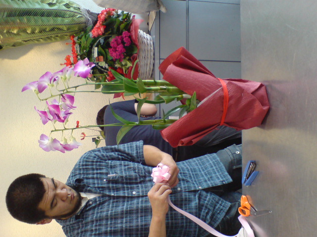 途中、近くの花屋さんで花を調達